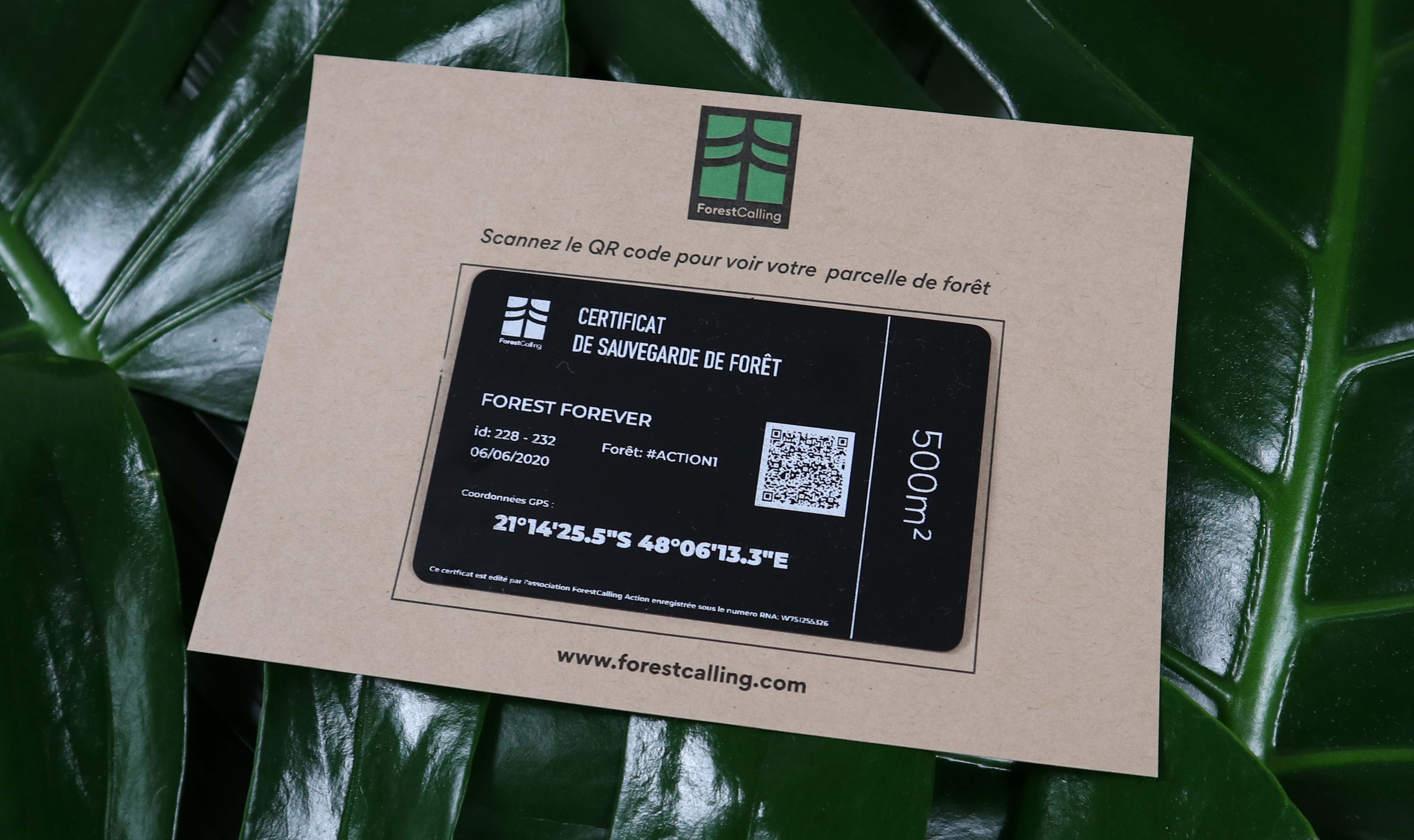 Chaque contributeur reçoit un certificat de sauvegarde et devient titulaire de la parcelle de forêt préservée. Sur ce certificat sont mentionnés : l’identité du client, la date de sauvegarde, le numéro de la parcelle, la positon GPS exacte du centre de la parcelle, un QR Code à scanner permettant de visualiser la position à partir d’un smartphone. Le client dispose ainsi du statut de « Défenseur des Forêts » .